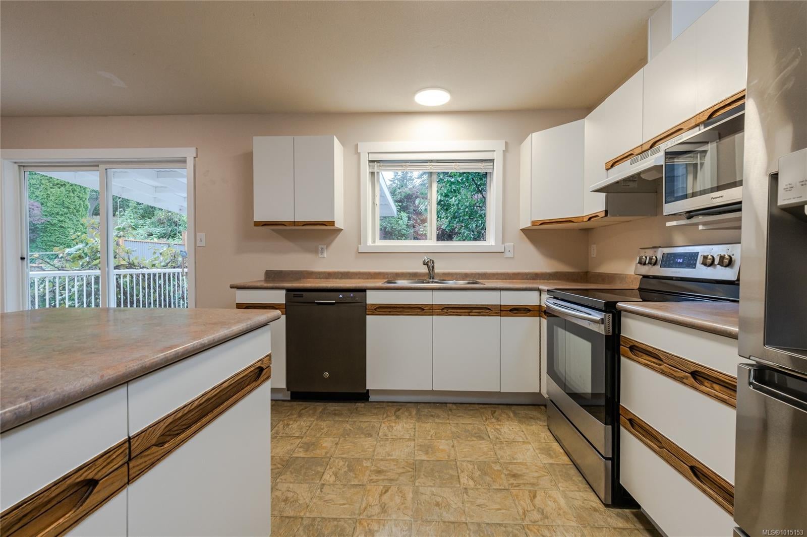 Spacious 1862 sq ft home on a quiet lane in a South Nanaimo family neighbourhood. This 5 bedroom home has all the space you need for a growing family at an affordable price. The main level has the open concept kitchen/dining area with access to the covered deck plus a large family room. 3 bedrooms on this floor including the primary bedroom with access to the main washroom through a cheater-door. Downstairs are two more bedrooms (one without a closet), extra large laundry room with chute from the upstairs bathroom. Double garage with extra storage and shelving. Outside features RV Parking, stone walls, mature plants, and fruit trees. Close to schools, parks, The new Quality foods and many more amenities. All data and measurements are approximate and should be verified by a buyer if deemed important.